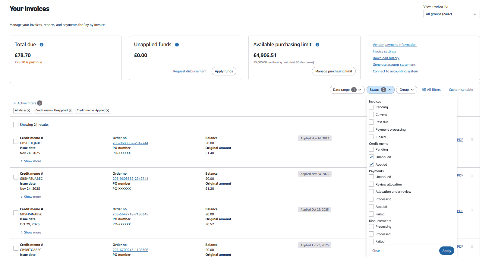 Think of the new Your invoices page as your accounts payable control tower. Everything you need is now visible at a glance - no more clicking through multiple pages or toggling between screens to find basic information.