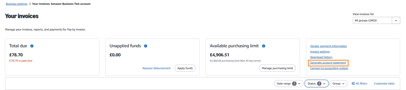 No need to wait until month-end to download an account statement. Simply click the Generate account summary link on the Your invoices dashboard.